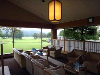レストランからの眺めは遮るものがなく、コースやその先の借景が楽しめる。